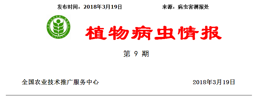 據(jù)國家氣候中心預報,春季我國黃淮、江淮、西南南部和新疆北部降水偏多、氣溫正常略偏高,對赤霉病和條銹病等病害發(fā)生有利;北方大部降水正常偏少、氣溫偏高,有利于蚜蟲發(fā)生繁殖。隨著氣溫穩(wěn)定回升和小麥的快速生長,多種病蟲害將進入發(fā)生危害盛期。西南和漢水流域小麥條銹病將進入發(fā)生高峰期,向東部主產(chǎn)麥區(qū)傳播擴散的威脅加大;長江中下游、江淮、黃淮、華北南部等廣大麥區(qū)麥蜘蛛、蚜蟲、紋枯病、白粉病等將進一步上升危害。各地應及時組織開展病蟲調(diào)查,掌握發(fā)生動態(tài),準確發(fā)布病蟲情報,為做好科學防控提供有效信息服務。